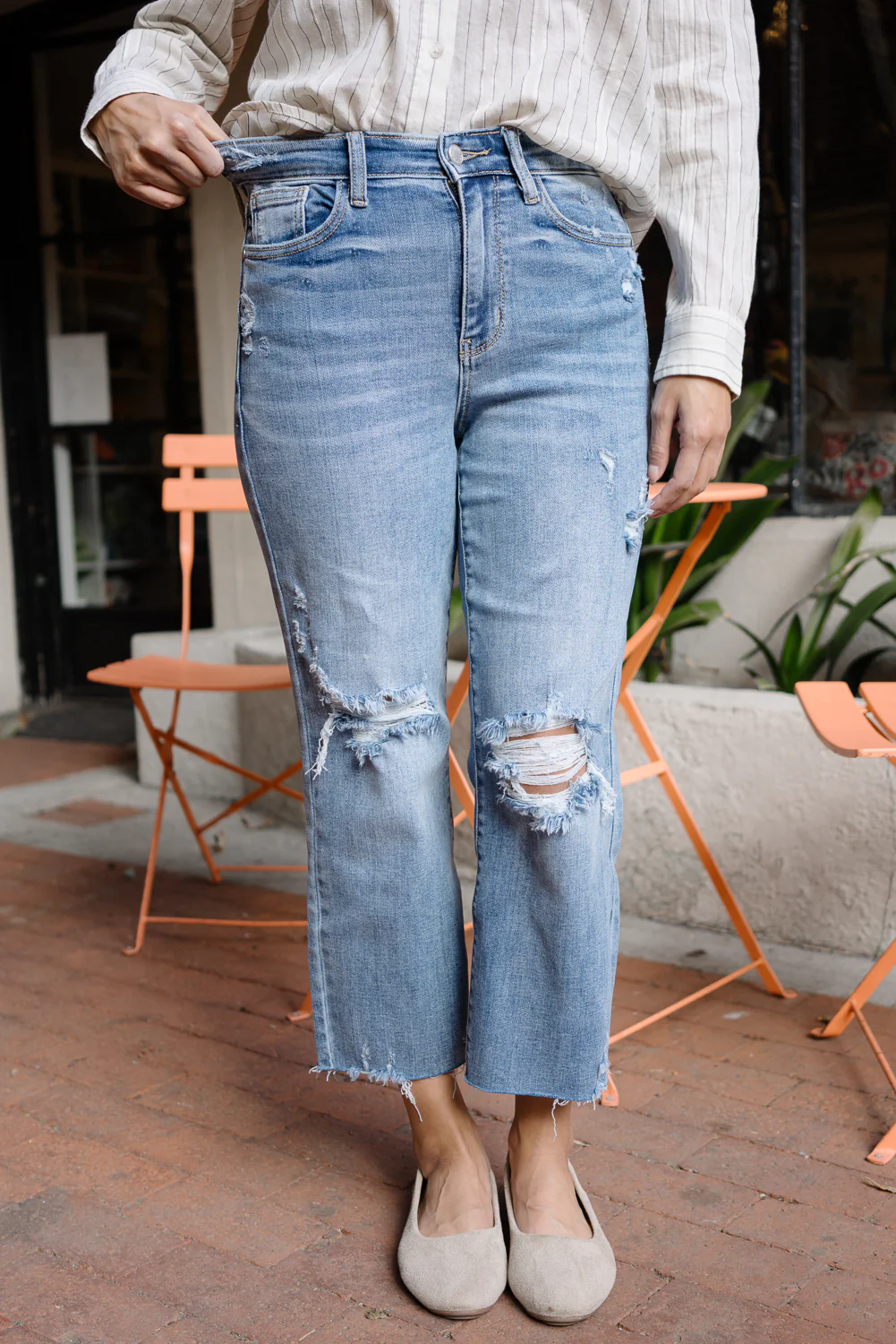 Celeste High Rise With Distressed Crop Wide Leg