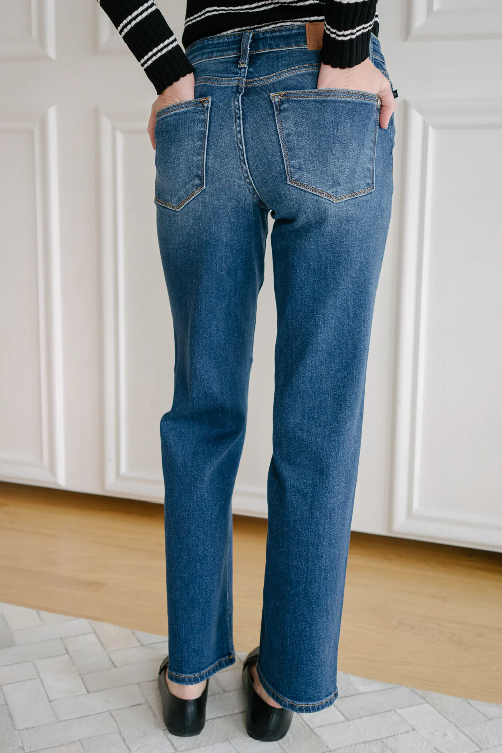 Aubrey Mid Rise Side Seam Detail Straight Jeans