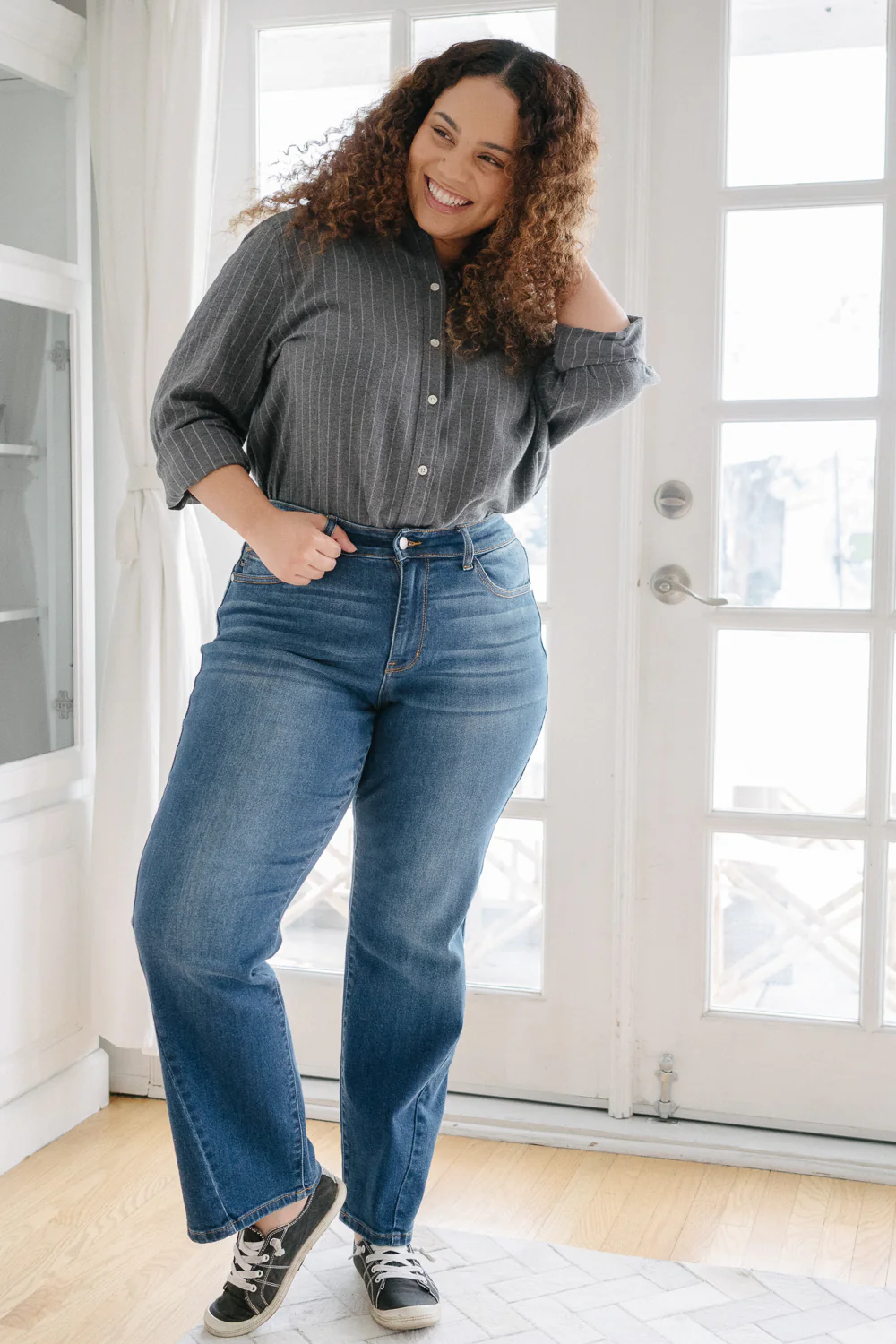 Aubrey Mid Rise Side Seam Detail Straight - PLUS