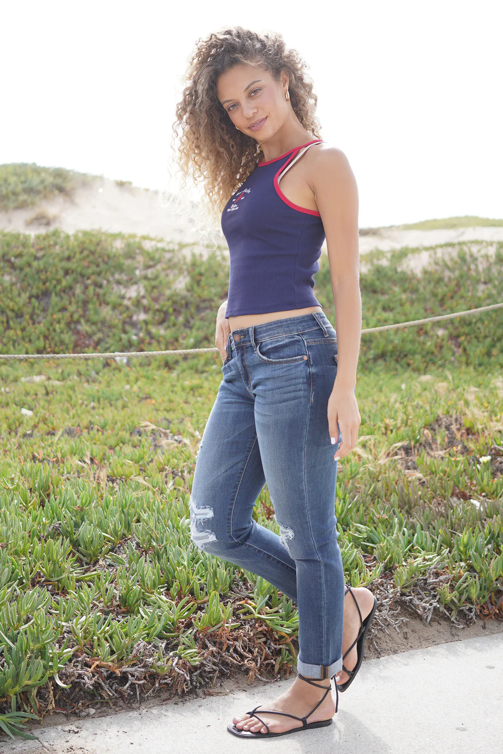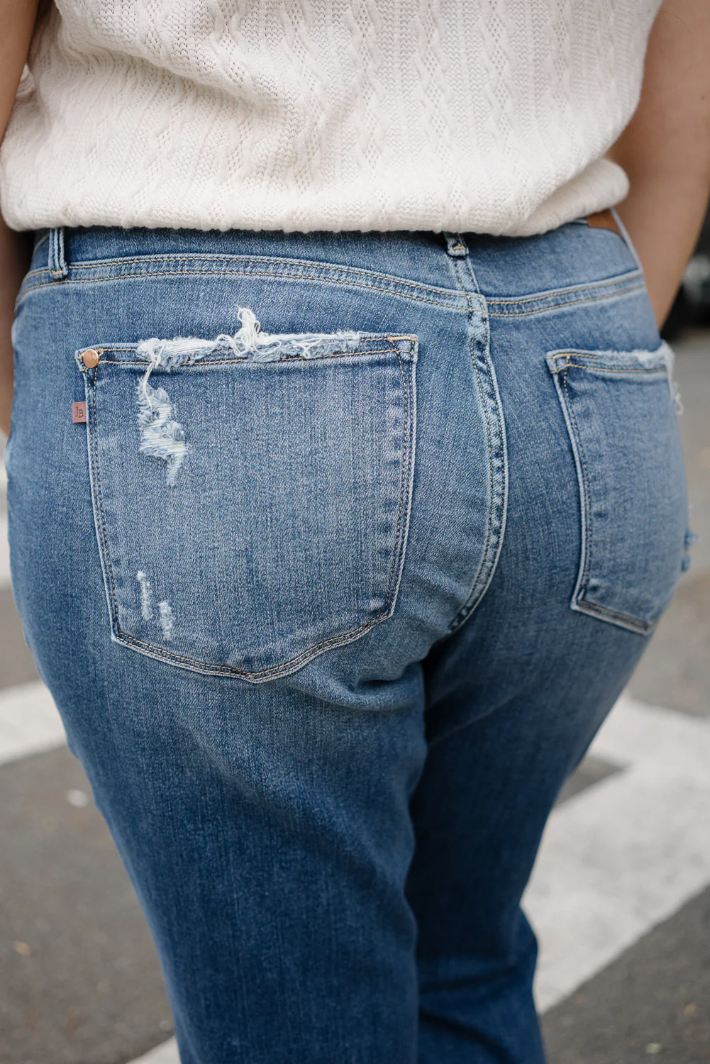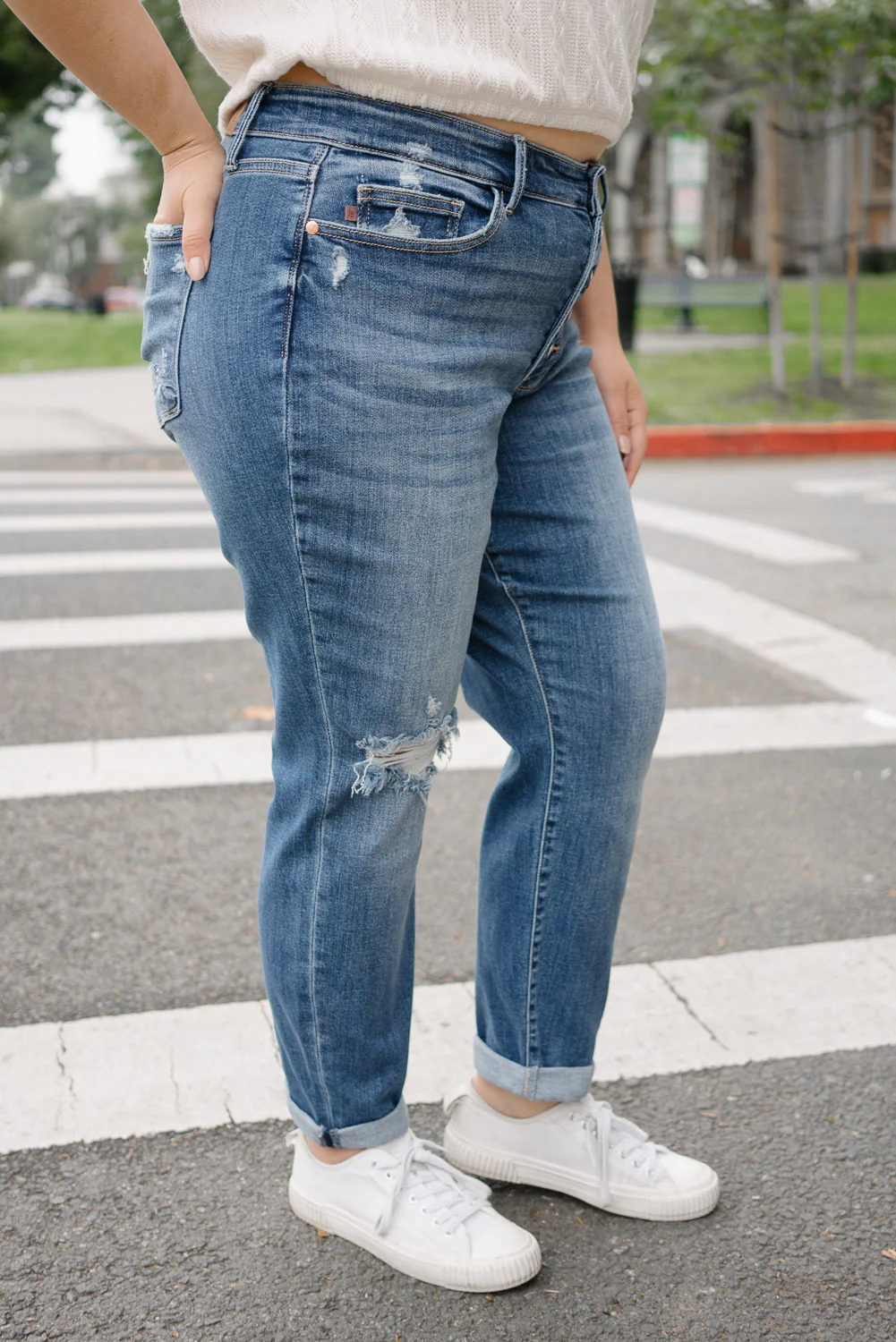 Aubree Mid Rise Distressed Boyfriend with Cuffed Hem