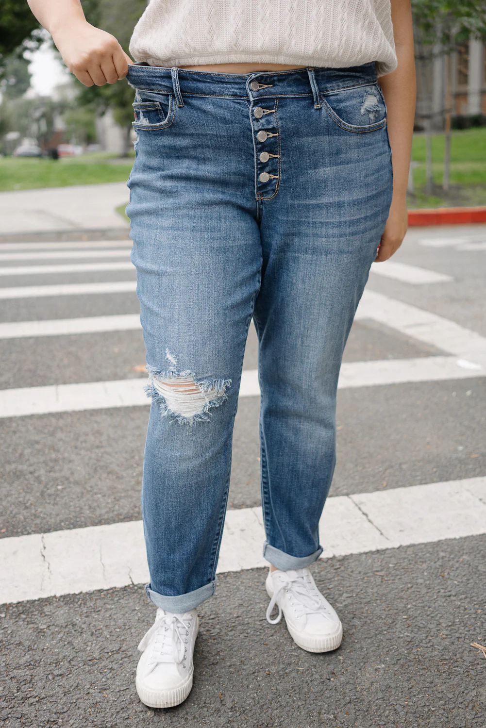 Tiffany Totally Chill Button-Fly Boyfriends - PLUS