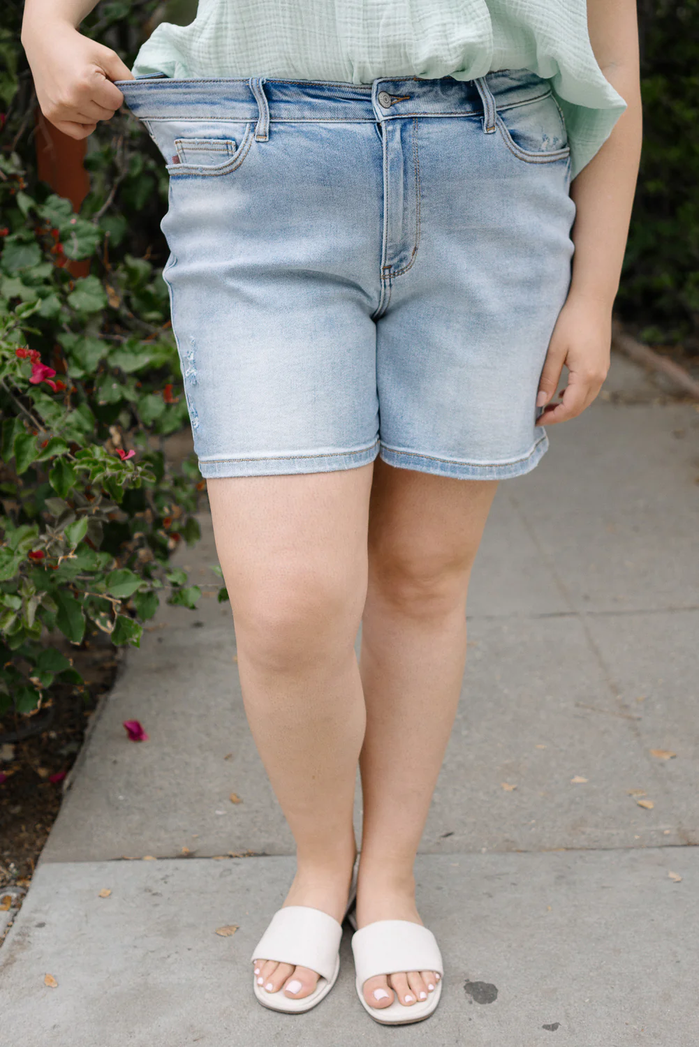 Jane 2-Button Mid Length Dad Shorts - PLUS