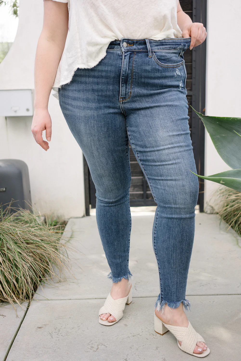 Dessarie High Rise Skinny with Distressed & Shark Bit Hem - PLUS