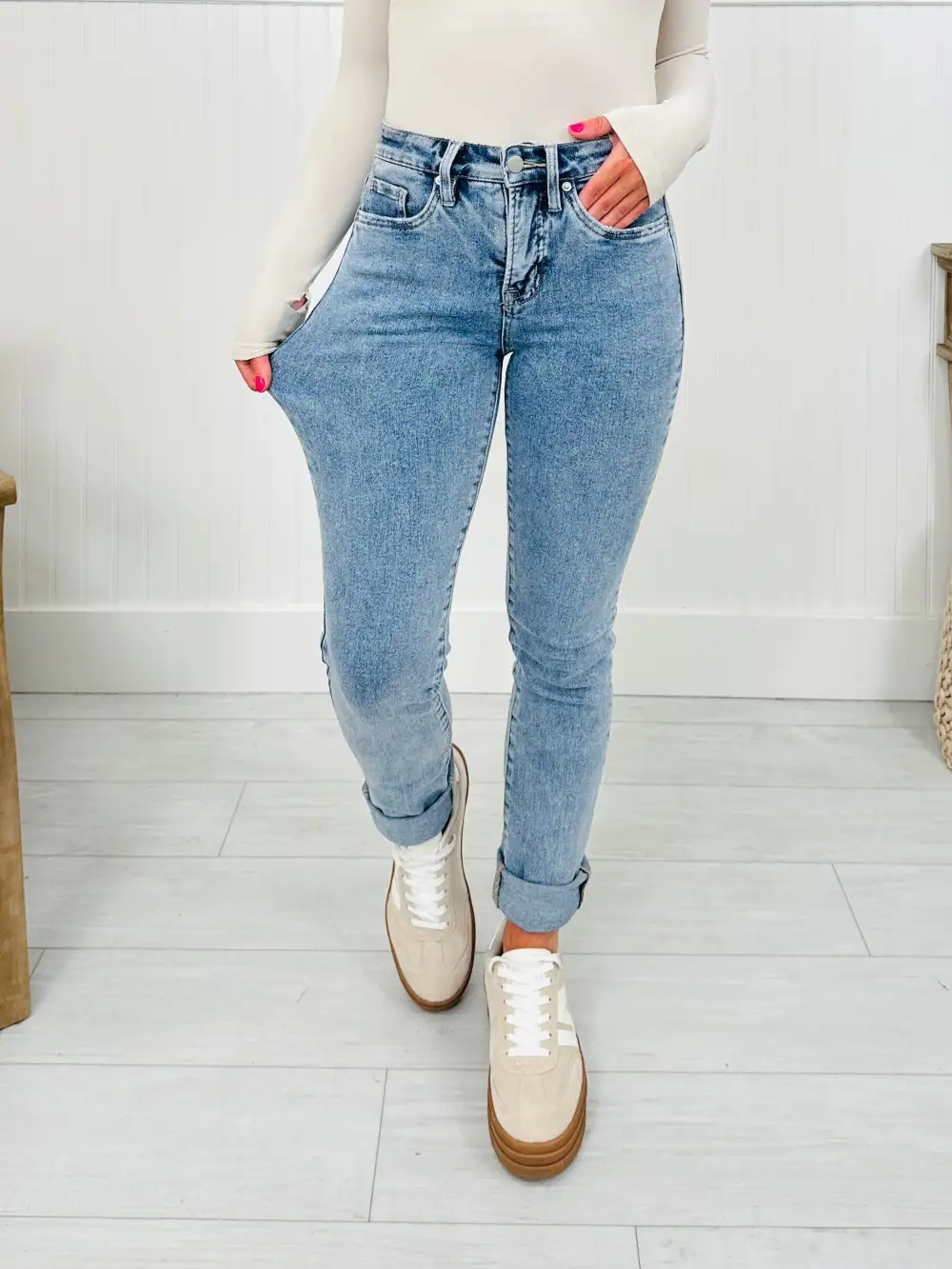 Crush On The Cuff Tummy Control Mom Jeans
