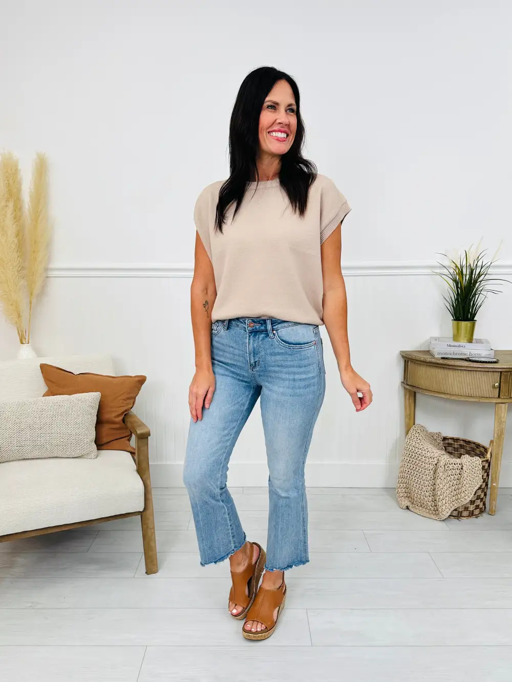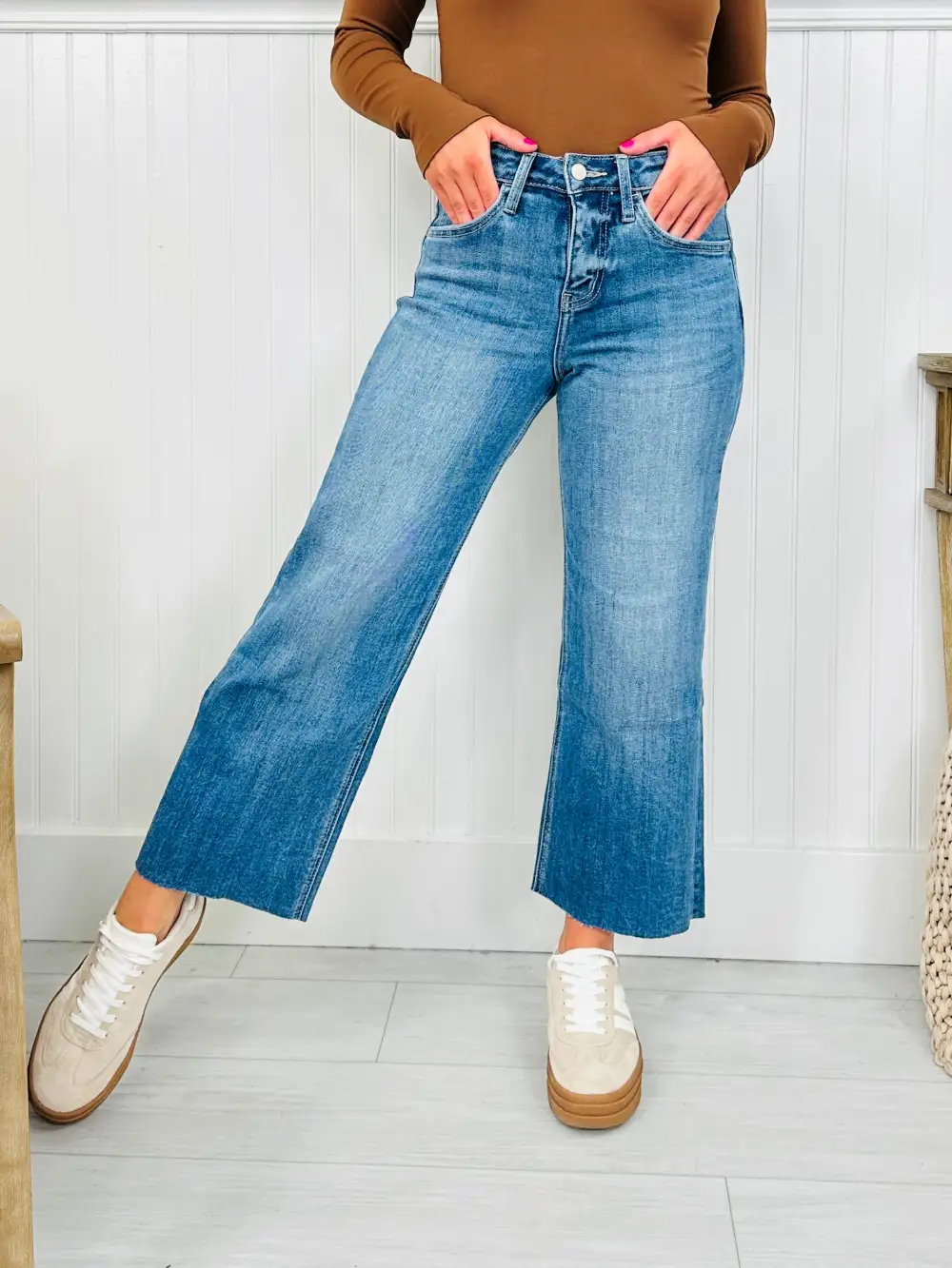 Straight To The Top Tummy Control Cropped Wide Leg Jeans