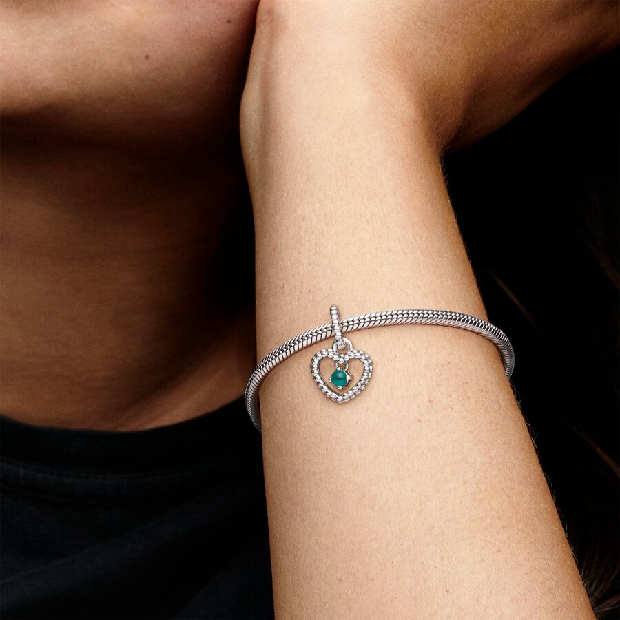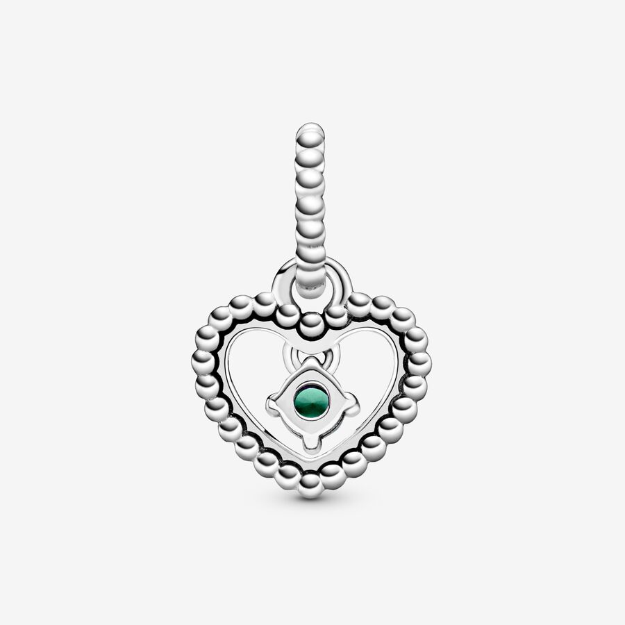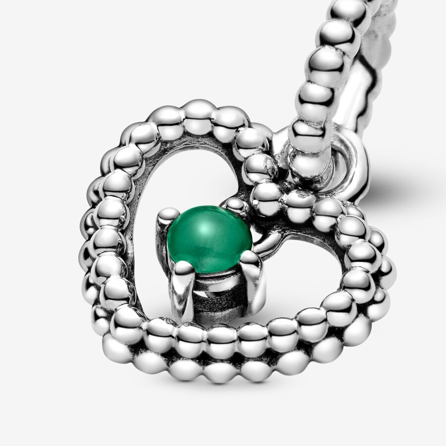 May Rainforest Green Beaded Heart Dangle Charm